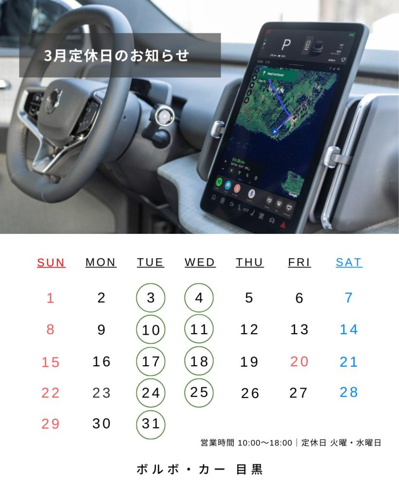 ボルボ・カー目黒では、毎週火曜日・水曜日が定休日となります。